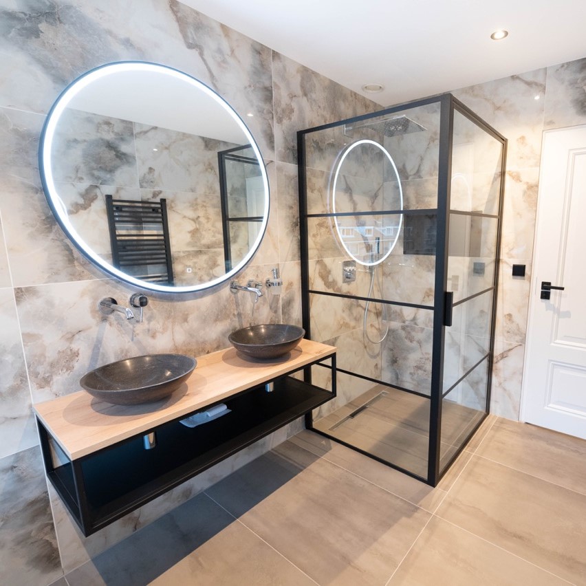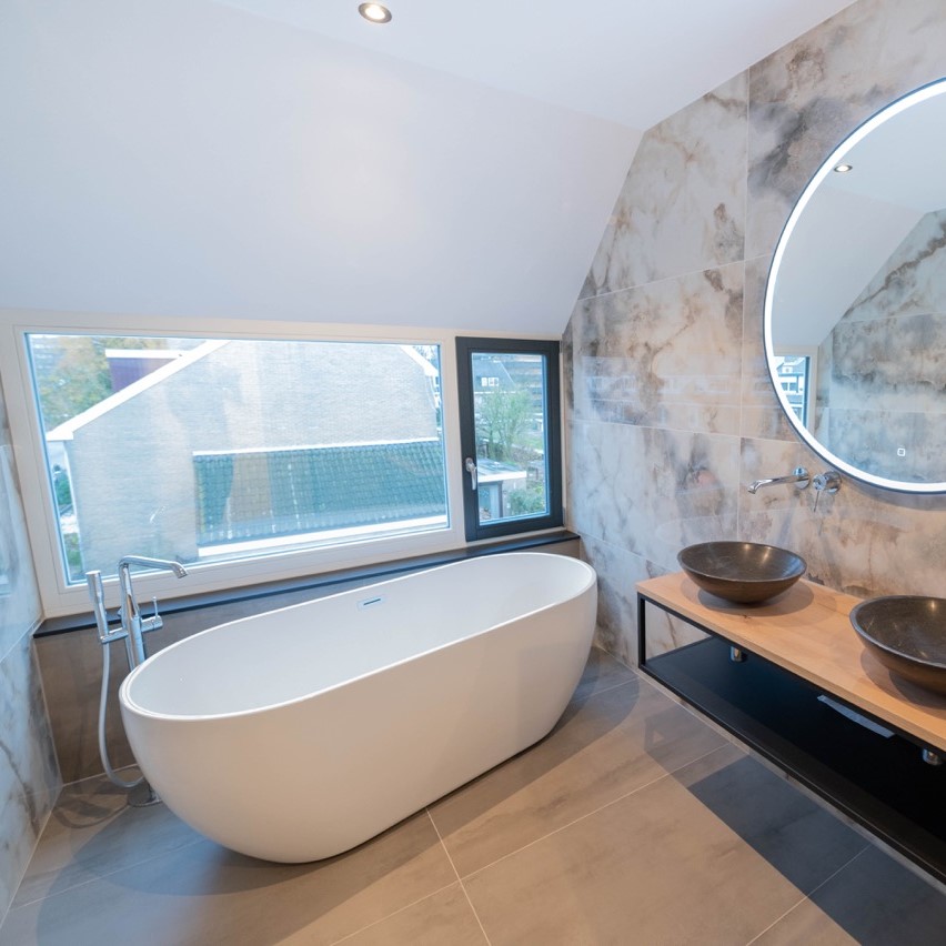 Het ontwerpen en bouwen van uw eigen unieke badkamer behoort tot onze favoriete werkzaamheden. Is uw badkamer aan renovatie toe of wilt u een badkamer op een andere plek? Bouwt u wellicht een geheel nieuwe woning en wilt u dat het unieke design ook technisch goed wordt uitgevoerd? Wij helpen u graag verder in uw zoektocht naar de perfecte badkamer. Wanneer we doormiddel van mood-boards hebben vastgesteld wat voor badkamerontwerp u voor ogen heeft, begint de zoektocht naar de juiste materialen en producten.